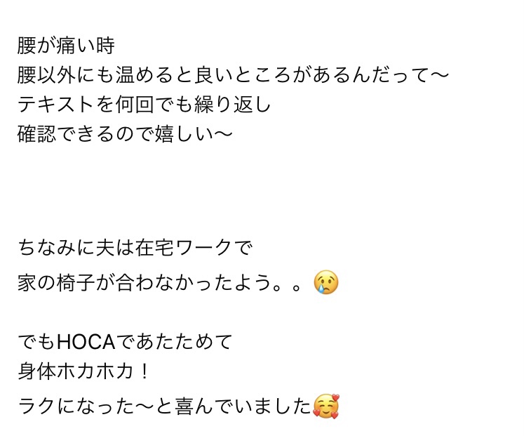 【基礎・公認コース感想】ご家庭でHOCA・温熱コミュニケーション