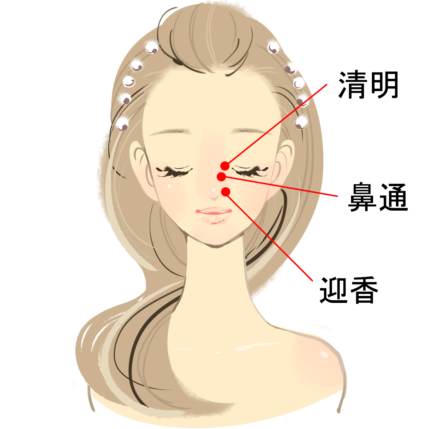 ②鼻通-鼻の付け根、迎香よりやや上-鼻の通りを良くする