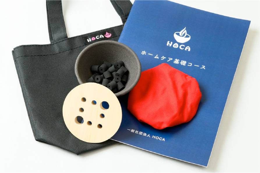 特許取得のHOCA温熱器や専用テキストを使って、セルフケアから家族・友人ケアまでしっかり習得。